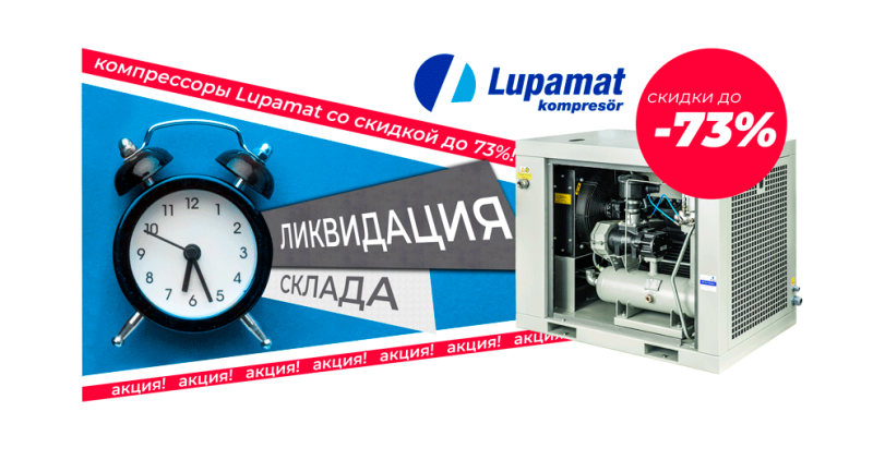Мы увеличили размер выгоды: теперь надежные винтовые компрессоры Lupamat (Турция) доступны со скидкой до 73%!